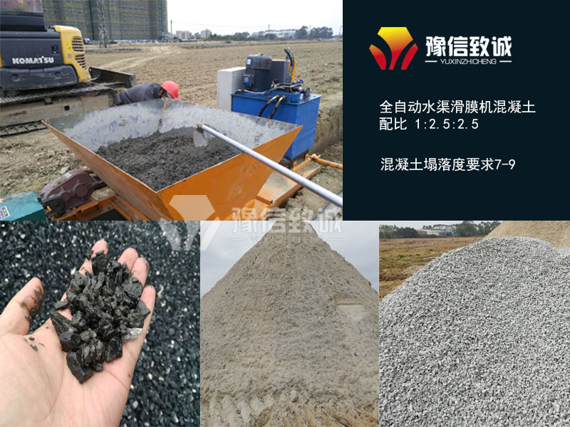 使用水渠滑模機(jī),混凝土中水、水泥、沙子的正常比例是1:2.5:2.5。這點(diǎn)還是很容易滿足的,但是除了比例還要求混凝土的塌落度控制在7-9之間。7-9的混凝土幾乎是干料了,如果商混站攪拌出了塌落度小于11的混凝土,正常的混凝土罐車是倒不出來。這樣混凝土運(yùn)到場地后就是十分尷尬的場景了。